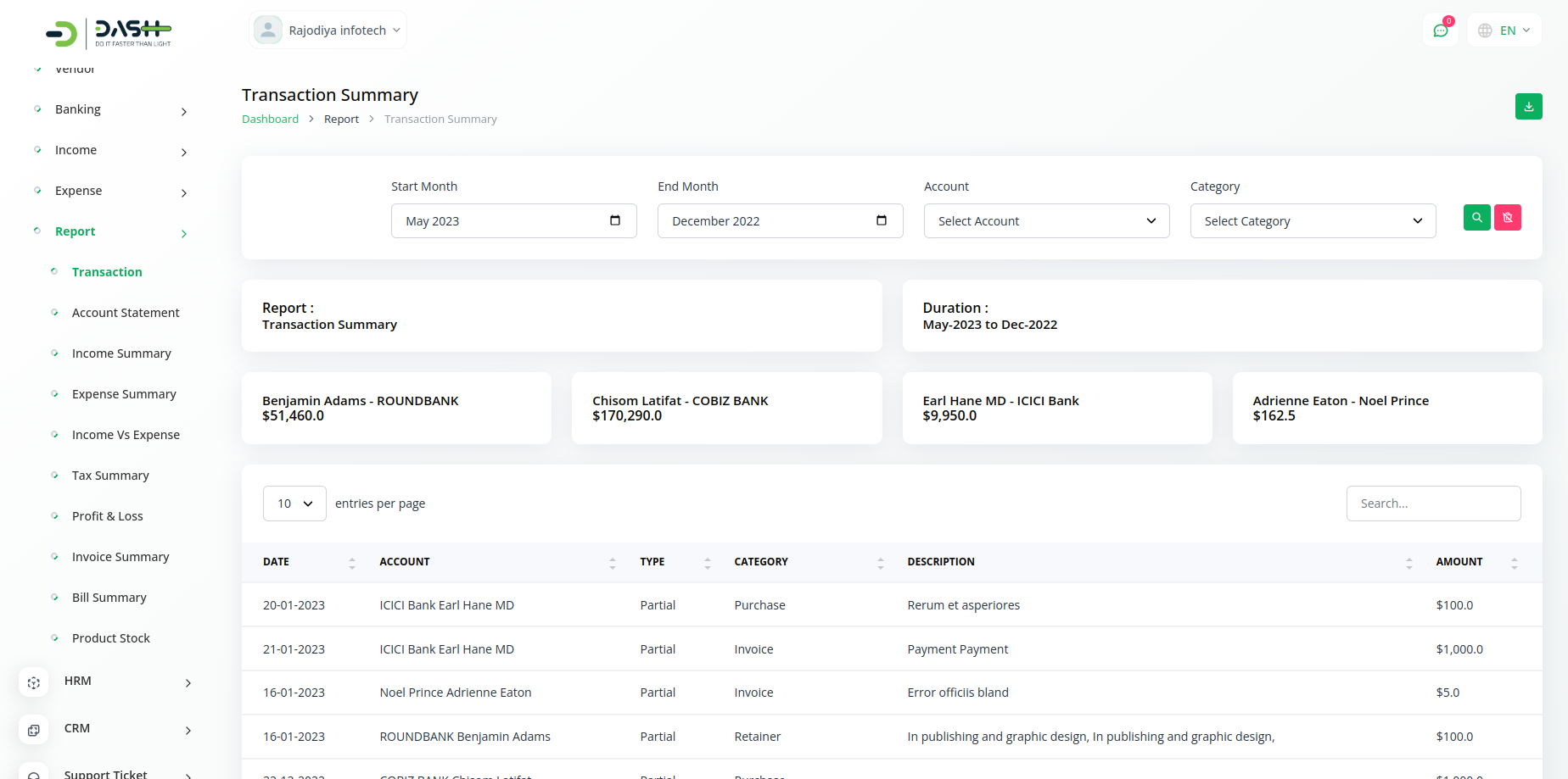 Account is an account management software that facilitates ease in revenue calculation by keeping a tab on all the accountancy matters of business. Based on Laravel, this accountancy software will make your business operations smooth and convenient. A graphical and tabular representation of various elements will help you make informed decisions for your firm.